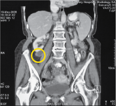Yellow circle highlights Tumour
